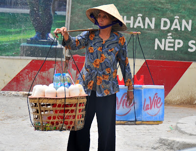 Old vietnamese are still working to sell these fresh coconuts along the streets. One fresh coconut is around 30,000 dong, that's around 2US.